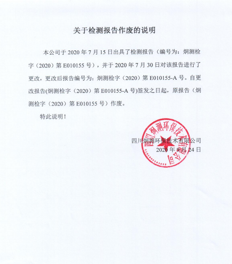 关于检测报告作废的说明