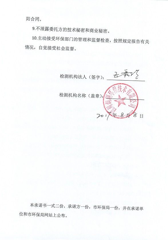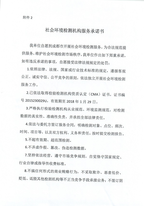 社会环境检测机构服务承诺书